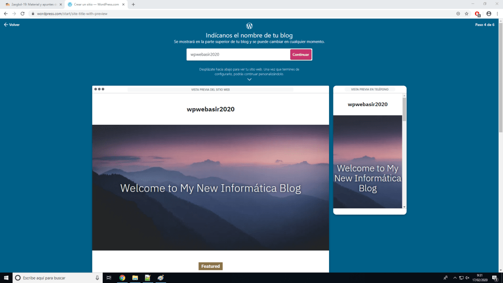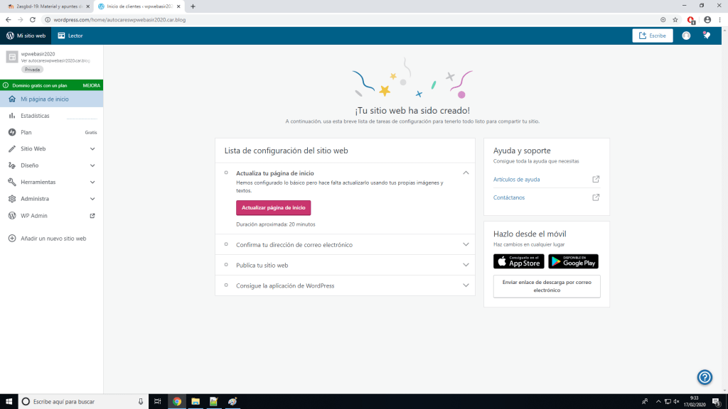 Con esto se empezará a crear nuestro sitio.