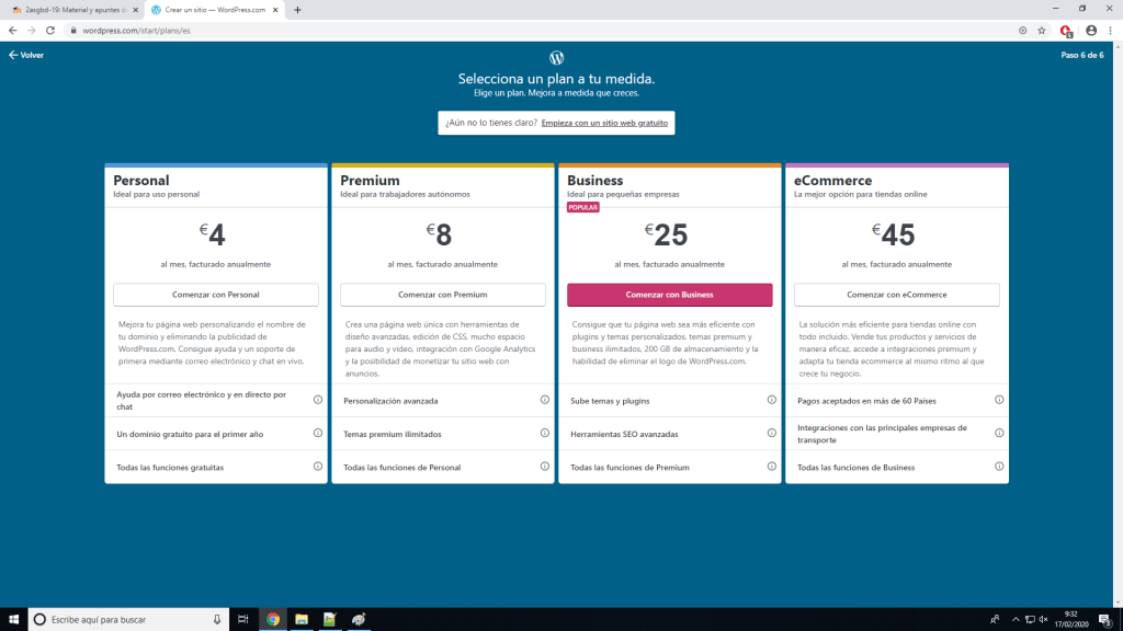Tenemos que elegir el alojamiento que queremos, en este caso la opción de arriba para usar uno gratuito.