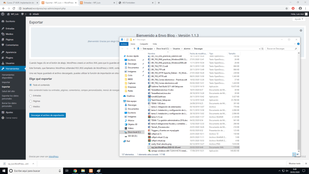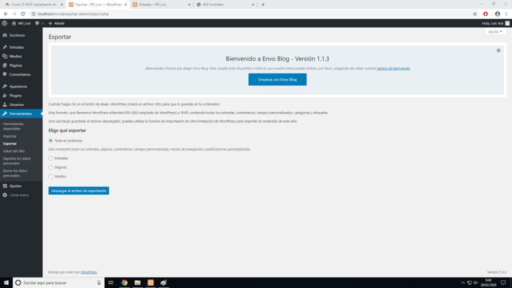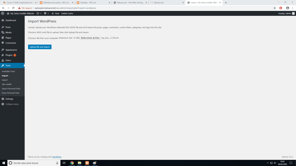 Con este archivo nos vamos a nuestro nuevo sitio web, que ya tiene que tener WordPress instalado.
